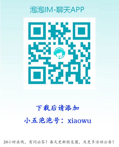 下载安装完后,请添加小五泡泡号:55555